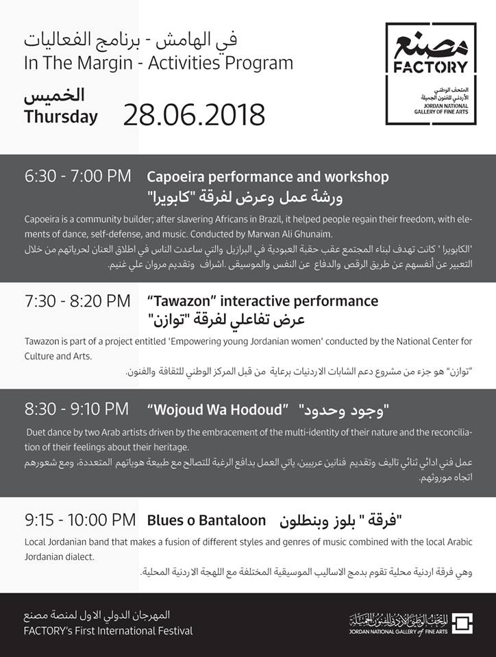 Organized by the Jordan National Gallery of Fine Arts, FACTORY is an open platform on contemporary art, innovation, and research. FACTORY is born to go beyond the walls of the museum and find ways of initiating dialogue and actively participate in the community. FACTORY is a platform for creation and innovation at the service of cultural and social advocates, artists, producers, directors, associations, and citizens. ——-DR. ROCÍO VILLALONGA Factory director/curator