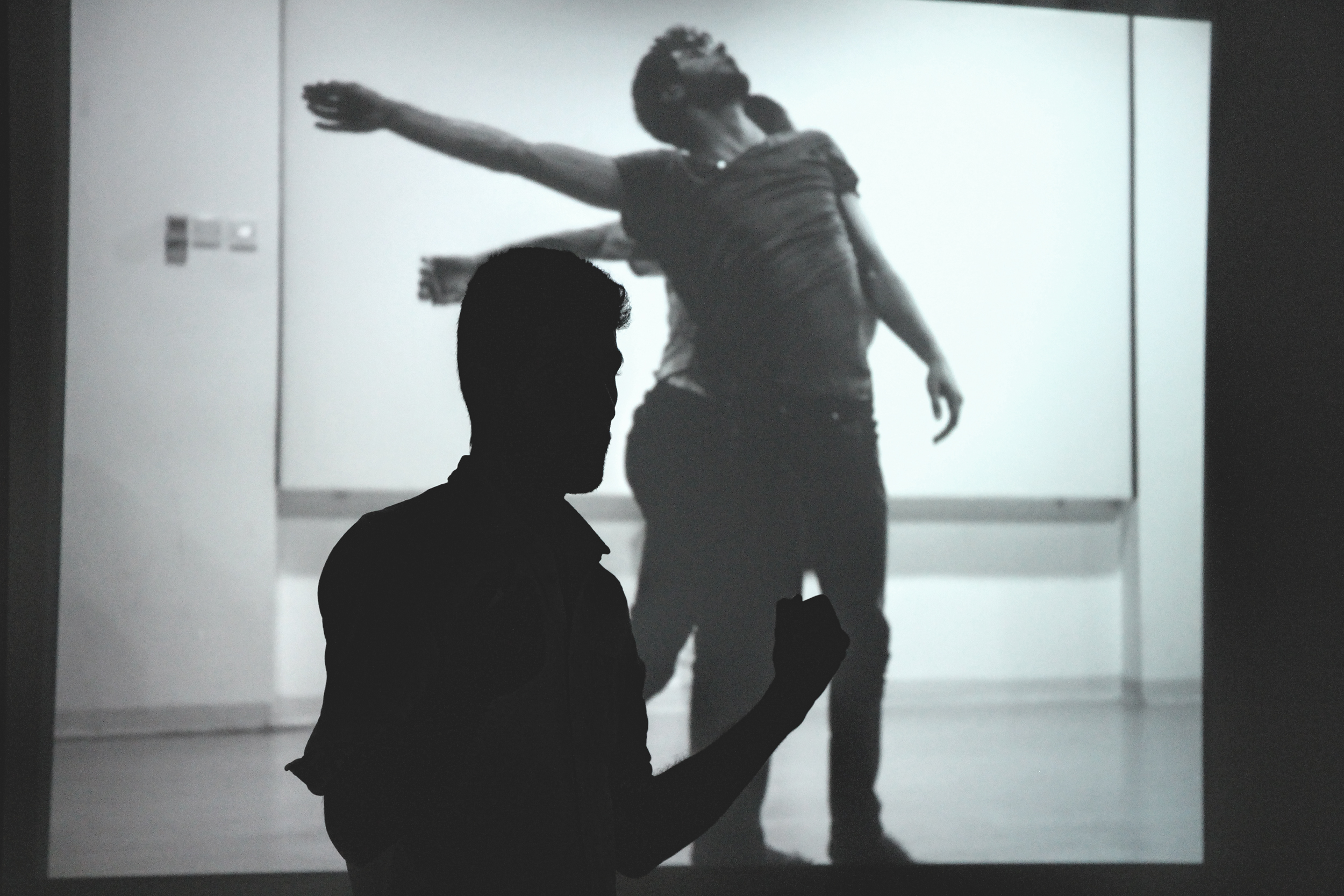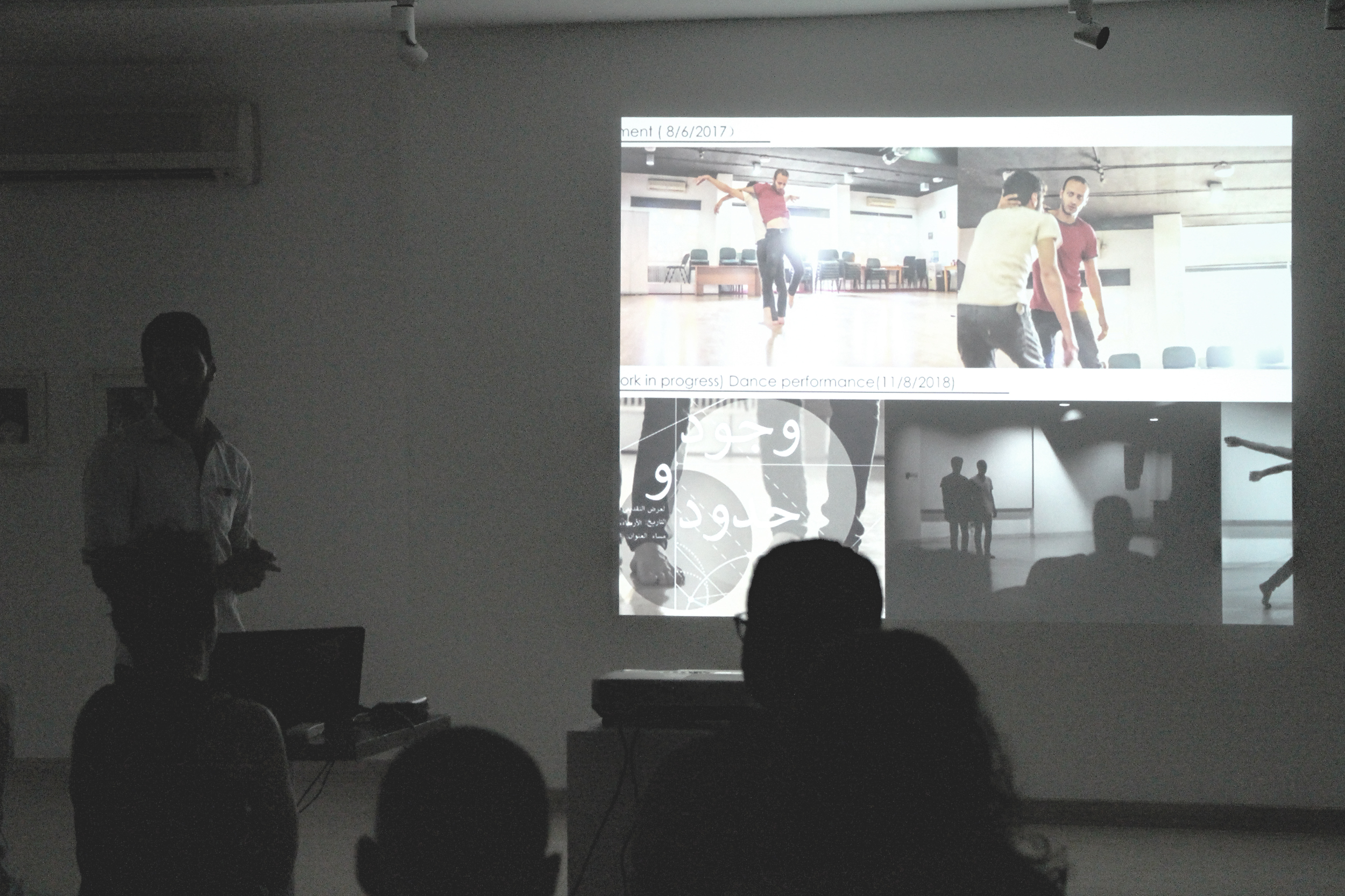 A one-hour presentation of the creative process of Studio 8’s dance creation “Wojoud Wa Hodoud”. Choreography, or dance making, is a creative process that requires practice as well as knowledge of how the process functions. In the presentation, choreographer Abd Al Hadi Abunahleh and Visual artist Ren shared their story of the observing an inspiration, feeling response, movement discovery and enhancing the dance through visual design, and technology, although technology is sometimes an integral part of the creative process. Dance making is a spiraling, circular progression in which the choreographer intermittently returns to beginning steps when needed.