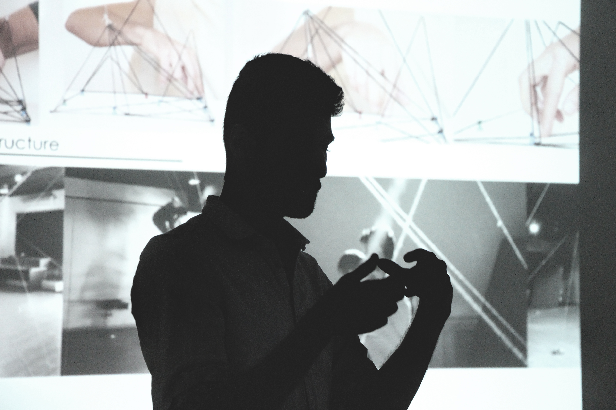 عرض تقديمي يشرح ويبين العمل الإبداعي للانتاج الفني الادائي في ستوديو 8 “وجود وحدود”. الكوريغرافيا ، أو صنع الرقص ، هي عملية إبداعية تتطلب ممارسة وكذلك معرفة كيفية عمل هذه العملية. في العرض التقديمي ، شارك مصمم الرقصات عبد الهادي أبو نحلة والفنانة البصرية رين قصتهما حول مراقبة الإلهام ، والشعور بالاستجابة ، واكتشاف الحركة وتعزيز الرقص من خلال التصميم البصري ، والتكنولوجيا ، على الرغم من أن التكنولوجيا في بعض الأحيان جزء لا يتجزأ من العملية الإبداعية. صنع الرقص هو تطور دائري دوري يعود فيه مصمم الرقص بشكل متقطع إلى الخطوات البدائية عند الحاجة