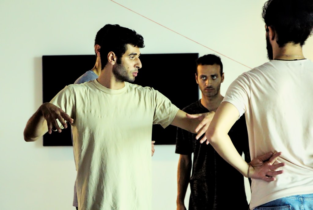 “Wojoud Wa Hodoud” is a process developing a method of dance making inspired by the exploration of the objective and subjective state of perceiving oneself as who I am and as relating to being a member of different groups which may be relying on a common culture, a traditional lineage, the common land in history, shared experiences, and defined by the existence of borders. Through the process of choreography of movement, our concept is represented by “motifs”, which are repeated actions gives the first element(s) of form to the dance.”